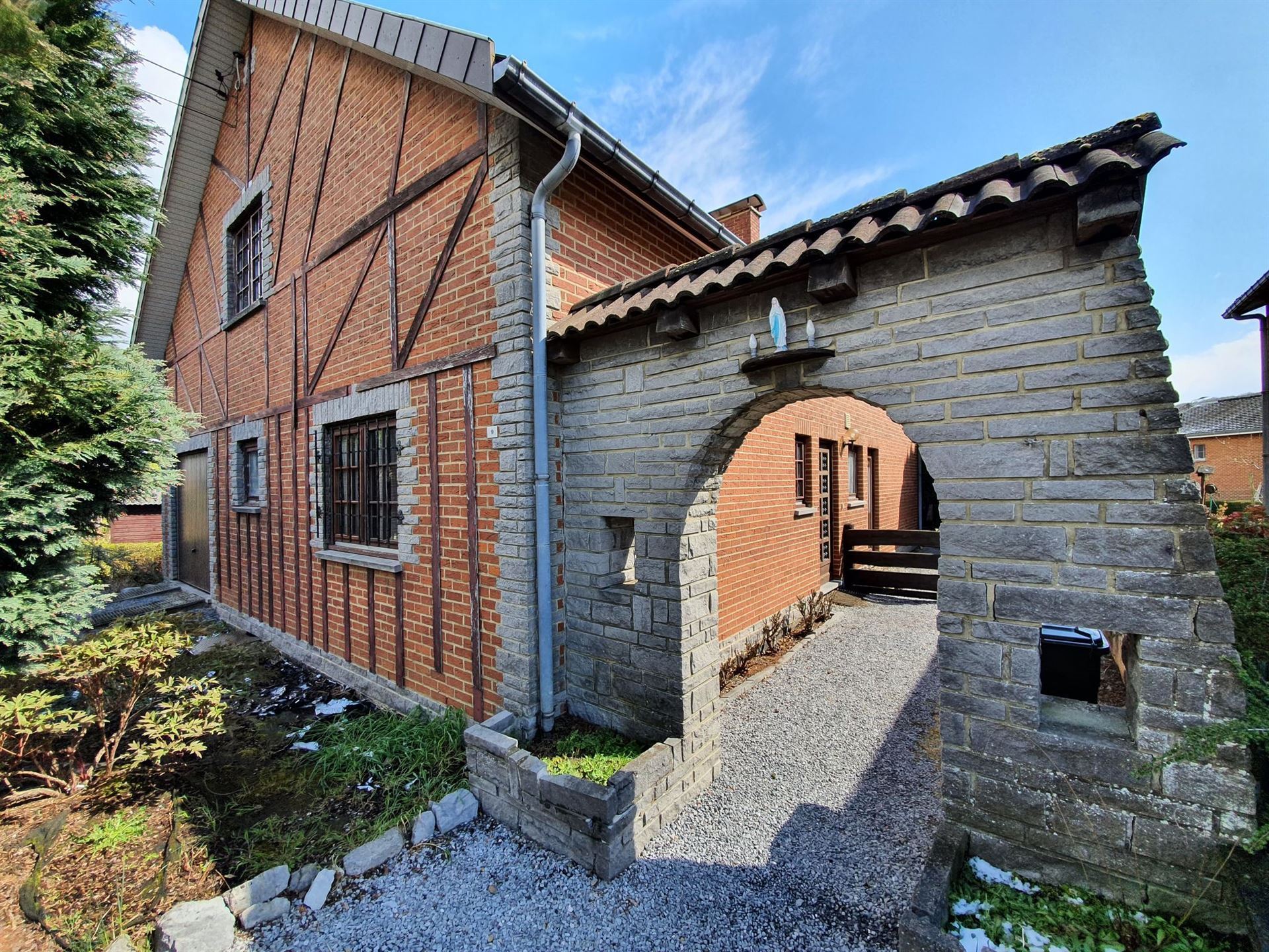 VENDU !!! Située dans le centre de Franière dans une rue très calme au début d’un cul-de-sac, une charmante villa 4 façades de 140 m² habitables sur un terrain de 3 ares 28ca, elle vous offre un salon/salle à manger lumineux et chaleureux, une cuisine semi-équipée, 4 chambres, une salle de bains et 1 emplacement de parking intérieur.Elle possède de grandes caves et un grenier, chaudière au mazout, PEB E.