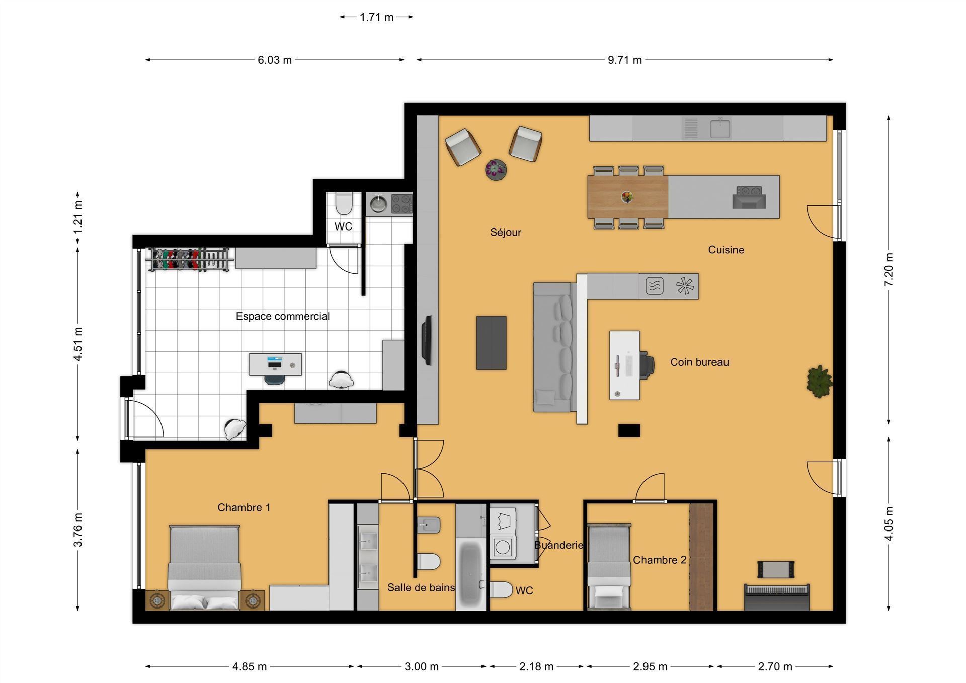 VENDU ! Idéalement située sur la place principale de Court-Saint-Etienne, nous vous proposons cette magnifique surface commerciale de +/- 300 m² exploitables. Elle se compose actuellement d’un show-room de +/- 92 m², d’un espace de +/-31 m² (actuellement studio d’enregistrement), kitchinette et wc+ une surface commerciale de +/- 30 m² (actuellement salon de coiffure) et un magnifique loft (conciergerie) « coup de coeur » de +/- 125 m² habitables composé d’un séjour très cosy de 52 m² avec placards design, une luxueuse cuisine ouverte hyper-équipée de +/- 24 m², 2 chambres et splendide salle de bains et douche en Corian. 5 emplacements de parking extérieurs. Possibilité de diviser en 2 espaces commerciaux distincts de 166 m² et 135 m² exploitables. Plus d’infos, vidéo et visite virtuelle sur www.gilmont.be. Descriptif complet sur demande au 010/65.01.65 ou info@gilmont.be. A découvrir sans tarder !