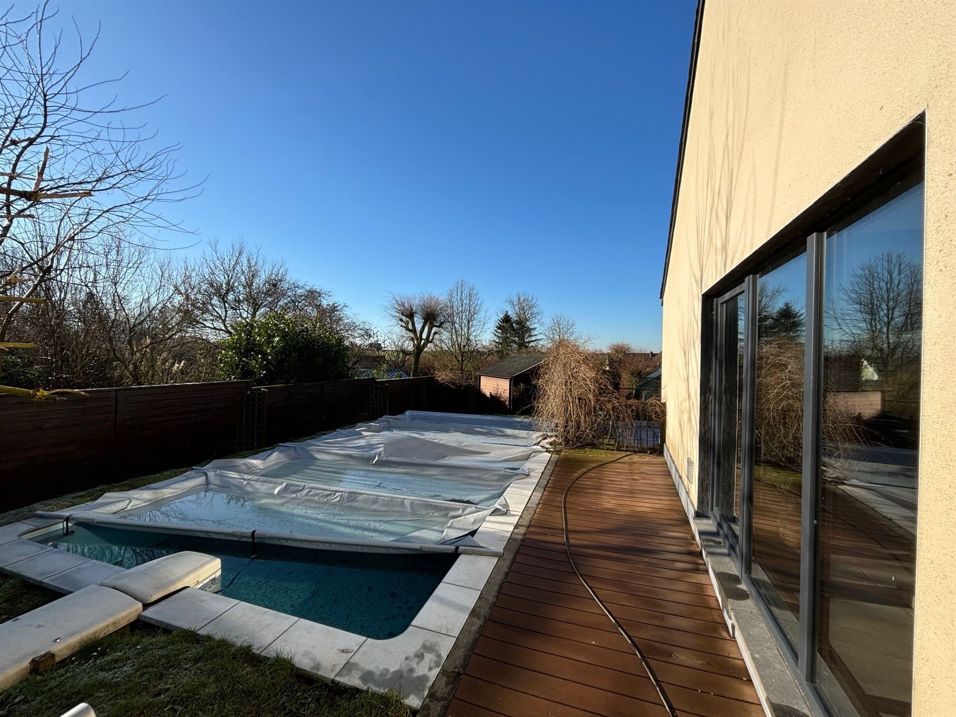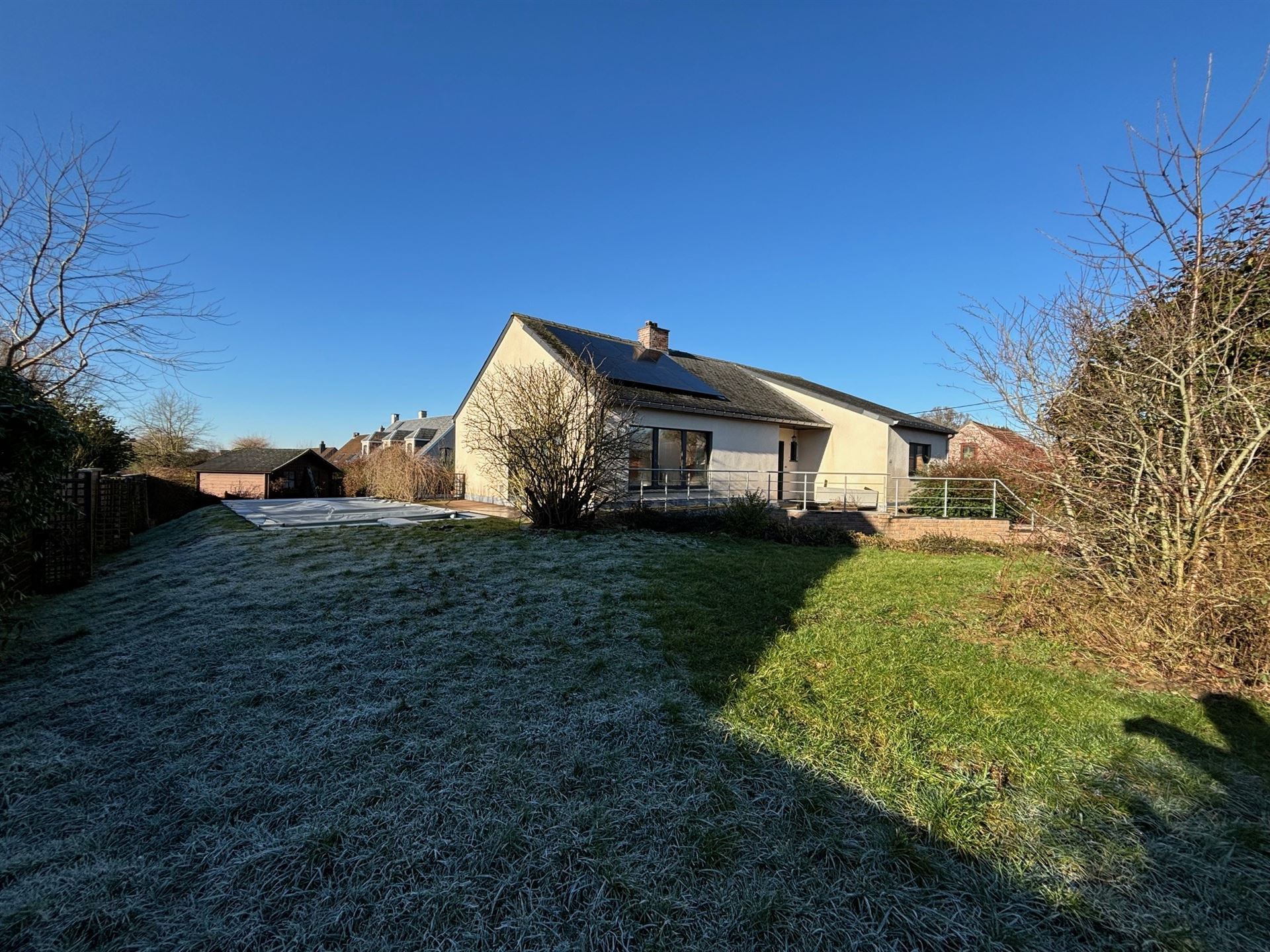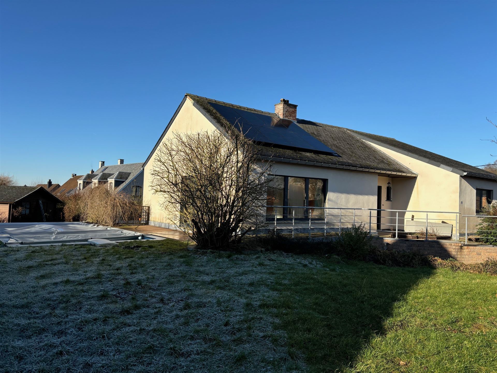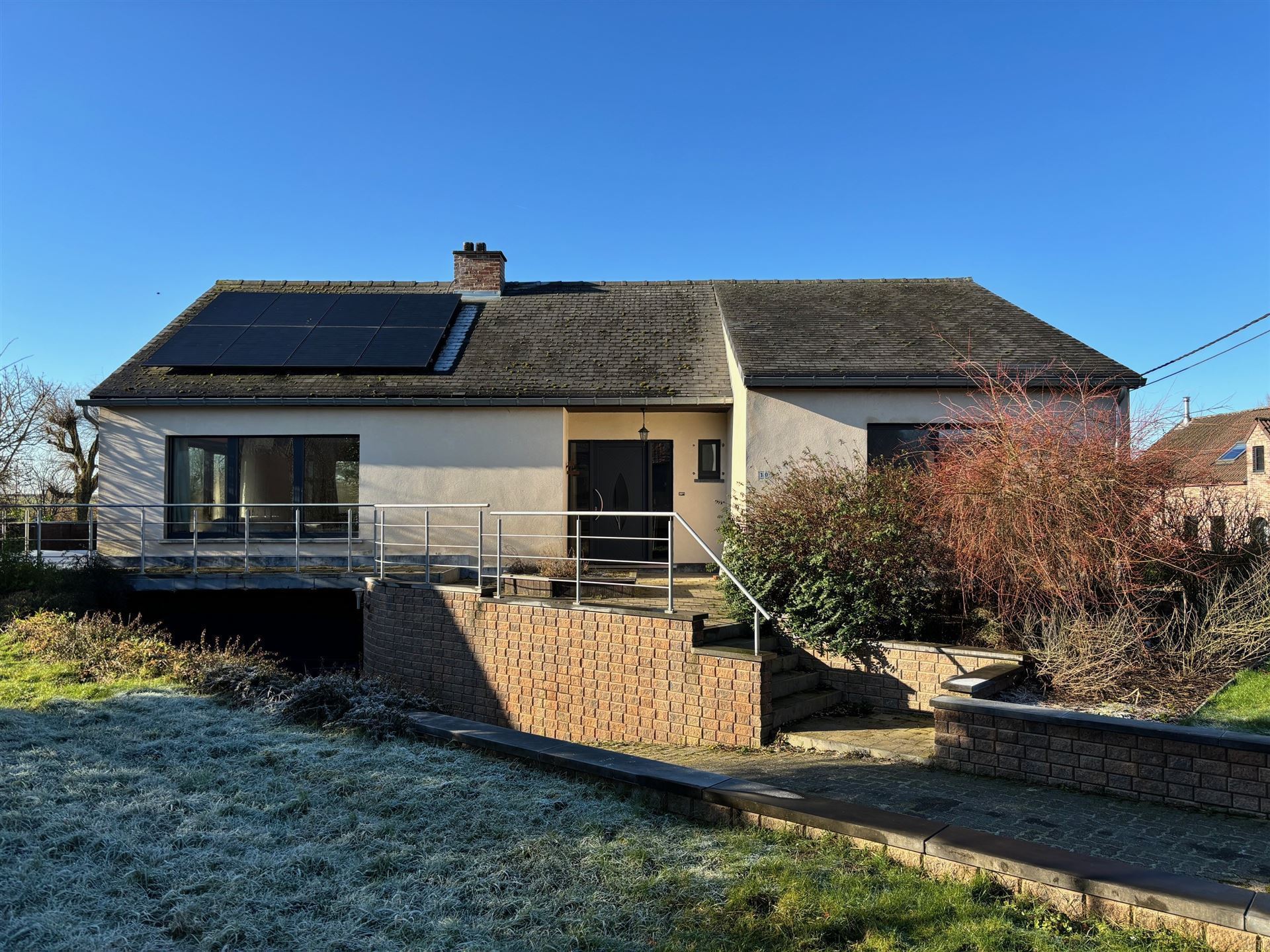 SOUS OPTION ! Située au calme dans un clos à proximité des champs et à 1,5 km de la gare de Chastre et de ses commerces, Gilmont Immobilier vous propose cette très lumineuse villa de plain-pied rénovée récemment sur un terrain de 13 ares 80 orienté sud-ouest. Elle vous offre un agréable living de +/- 42 m² avec un poêle à pellets, une cuisine hyper-équipée USA, 3 belles chambres, une salle de bains, un garage 1 voiture, deux caves et 1 grenier de rangement. Belle terrasse de +/- 46 m² et nouvelle piscine extérieure chauffée. Châssis triple vitrage, pompe à chaleur réversible, excellente isolation, installation électrique conforme, 18 panneaux photovoltaïques. PEB B 158 kwh/m²/an CU n° 20240703010981. Plus d’infos et visite 360° sur www.gilmont.be. A visiter sans tarder !
