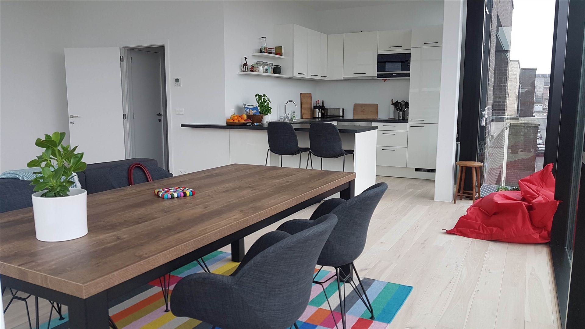 L’espace de vie impressionne dès l’entrée : baigné de lumière grâce à ses grandes baies vitrées orientées plein ouest, il bénéficie d’une hauteur sous plafond de 3 mètres, rappelant l’élégance des lofts new-yorkais. Une atmosphère rare, à la fois contemporaine et chaleureuse, avec en prime une vue dégagée sur de magnifiques couchers de soleil.