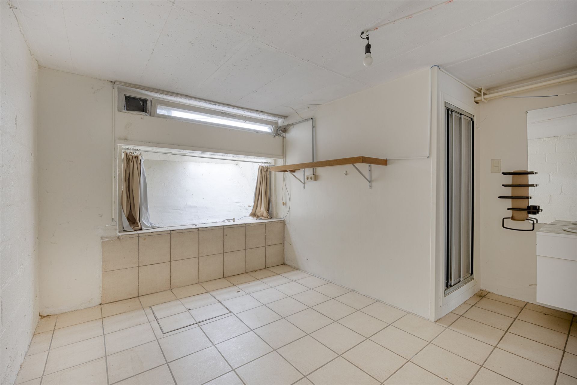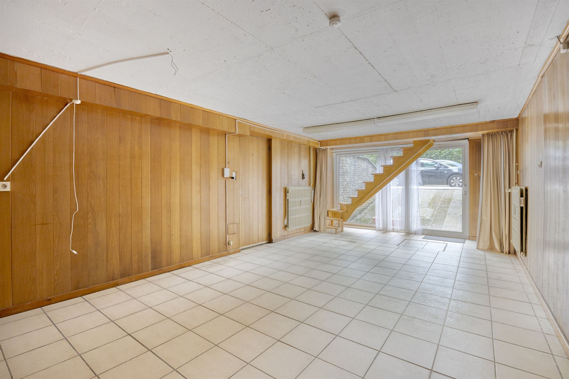 Le sous-sol, d’une superficie d’environ 43 m², propose de nombreuses possibilités d’aménagement. Le garage double, actuellement transformé en espace de vie avec porte-fenêtre, peut retrouver sa fonction initiale ou être conservé comme pièce supplémentaire(régularisation à prévoir). On y trouve également à l’arrière une pièce de 14 m², équipée d’une salle de douches avec WC et d’un évier, idéale pour créer une troisième chambre.