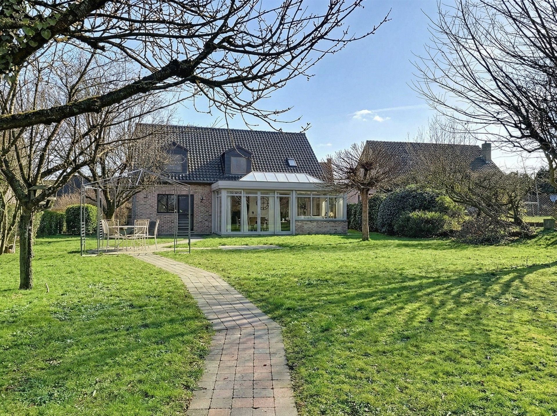 Charmante villa de 247m² située dans un quartier calme et agréable à Mont-Saint-André. Le rez-de-chaussée propose de beaux espaces de vie ouverts comprenant un hall spacieux avec wc séparé, un salon et une salle à manger lumineuse, prolongés par une grande véranda construite en 2015, équipée d’un poêle à pellets (2021) et offrant une vue dégagée sur le jardin. La cuisine équipée est fonctionnelle et de nombreuses annexes viennent compléter ce niveau, apportant un réel confort au quotidien (buanderie, chaufferie). À l’étage, la maison dispose de quatre chambres de 25,13,13 et 30m², dont une suite parentale avec salle de douche, en plus d’un bureau et d’une salle de douches rénovée en 2021. Les volumes et la clarté des pièces en font un espace de vie idéal pour une famille. À l’extérieur, le terrain de plus de 11 ares, orienté nord-ouest, accueille une belle terrasse en pierre bleue, un chalet de jardin, une cour avec portail électrique ainsi qu’un garage récent avec porte motorisée. La maison bénéficie également d’une chaudière récente installée en 2019, de châssis double vitrage de 2014 et de nombreux espaces de rangement. Un bien complet, confortable et soigné, offrant calme, espace et qualité de vie. PEB C, code unique 20260203021287. Faire offre à partir de 585.000€ sous réserve d’acceptation des propriétaires.
