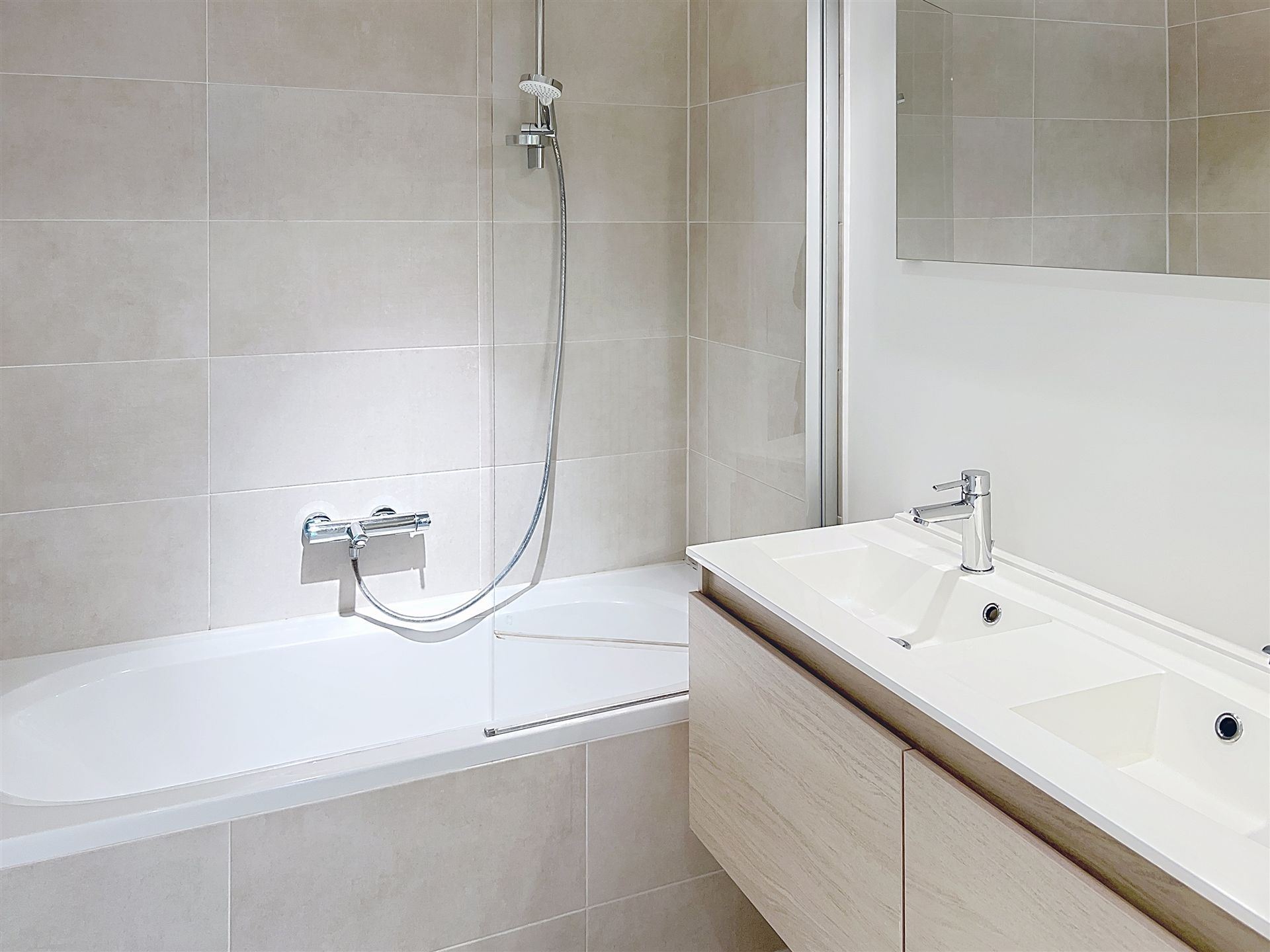 Côté nuit, l’appartement offre deux belles chambres ainsi qu’une salle de bain avec bain-douche, pensée pour allier confort et fonctionnalité.